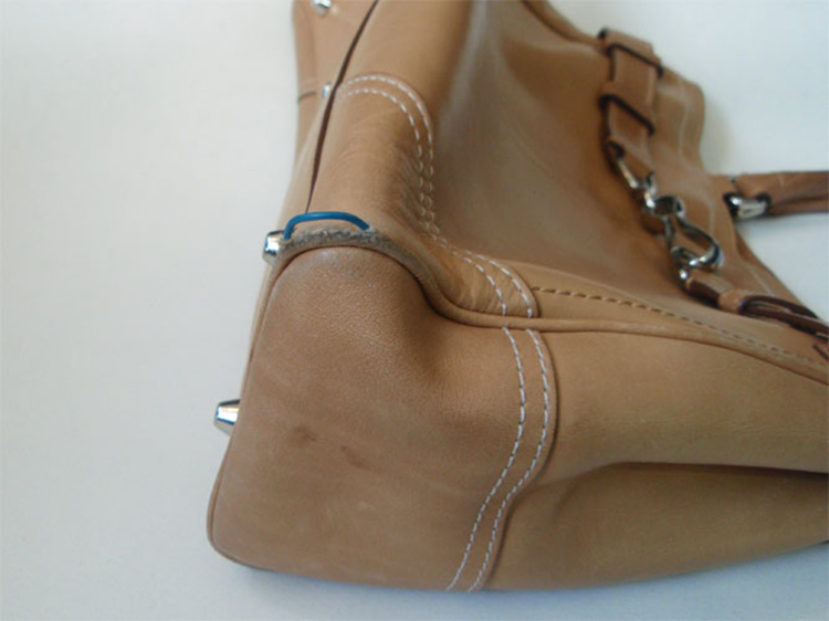 破れてしまったパイピングを部分的に当て革補強をさせて頂きました。